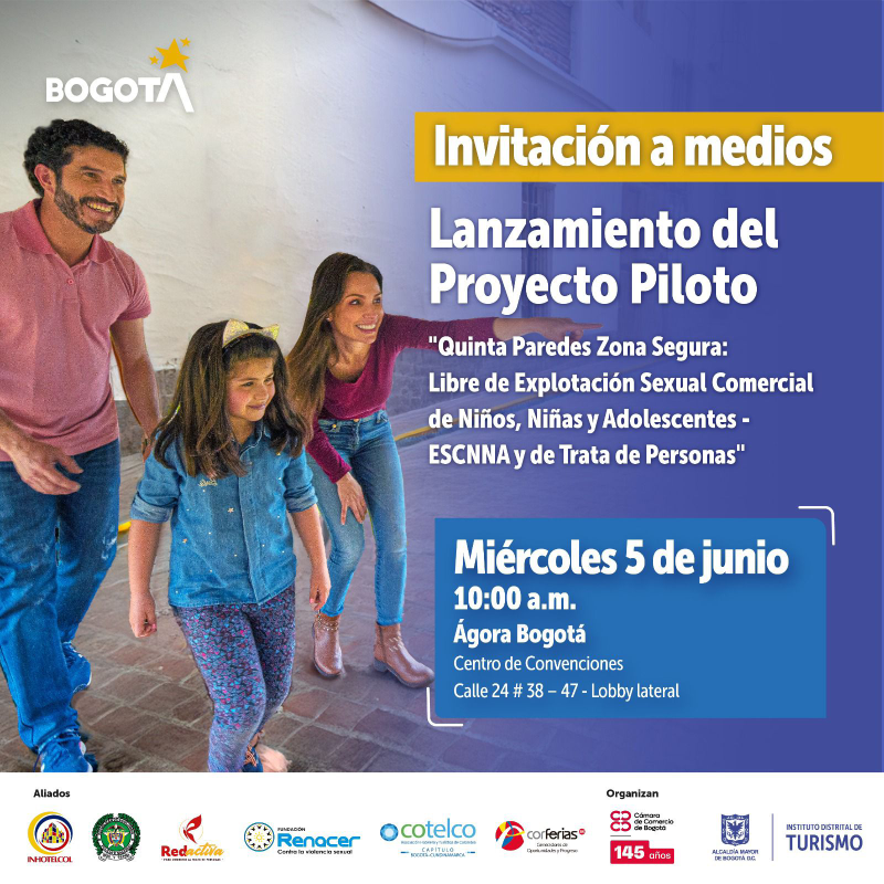 Así mismo, se visibilizará el trabajo conjunto con los aliados estratégicos que se han sumado al proyecto como son: la Red Activa para combatir la Trata de Personas, Corferias, COTELCO Capítulo Bogotá – Cundinamarca, Inhotelcol, Policía Metropolitana de Bogotá, y la Fundación Renacer.