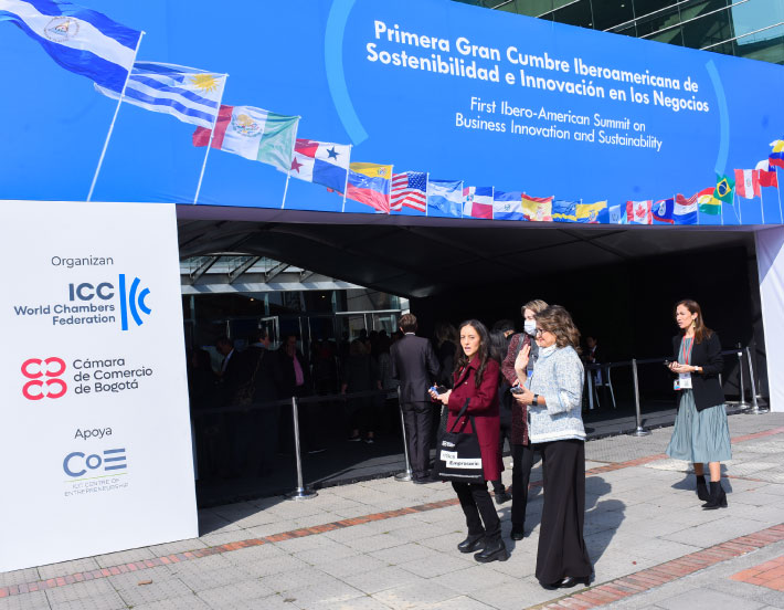 Bogotá D.C., octubre 26 de 2022. La Cámara de Comercio de Bogotá, en alianza con la Federación Mundial de Cámaras de Comercio, llevó a cabo la primera Gran Cumbre de Sostenibilidad e innovación para los negocios, con el fin de que más de 600 empresarios y empresarias de toda Iberoamérica conectaran con líderes empresariales de diversos países y panelistas internacionales, al tiempo que intercambian experiencias de innovación y sostenibilidad para la adquisición de nuevos negocios.