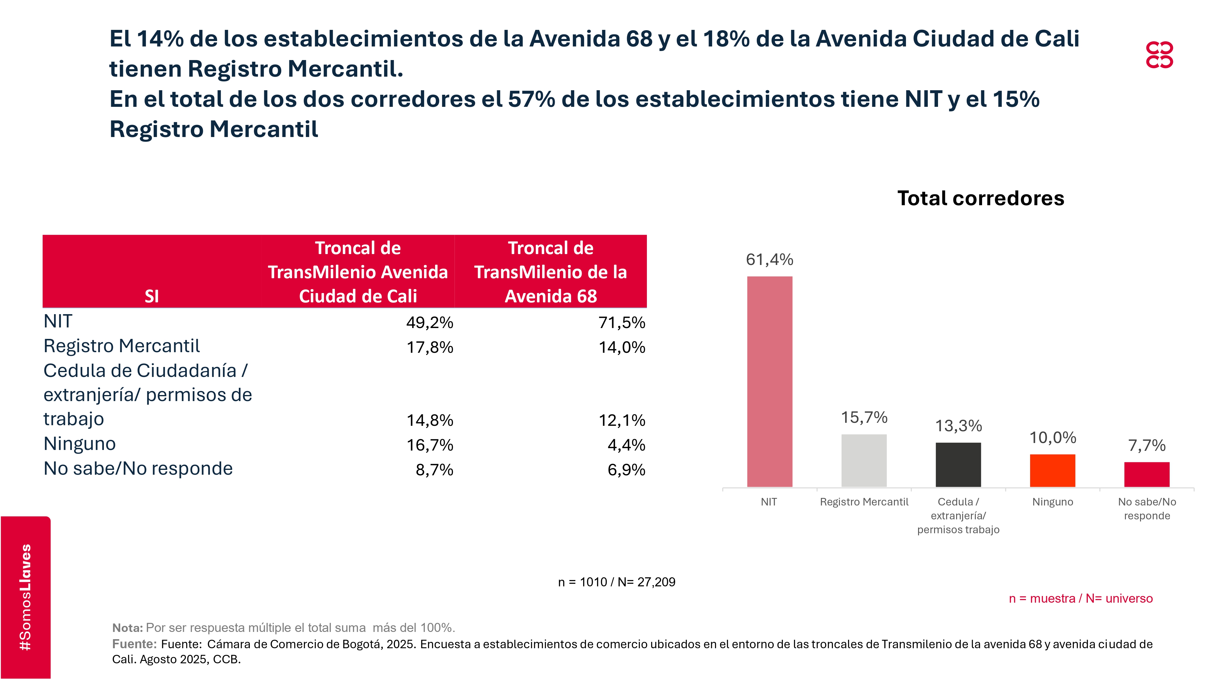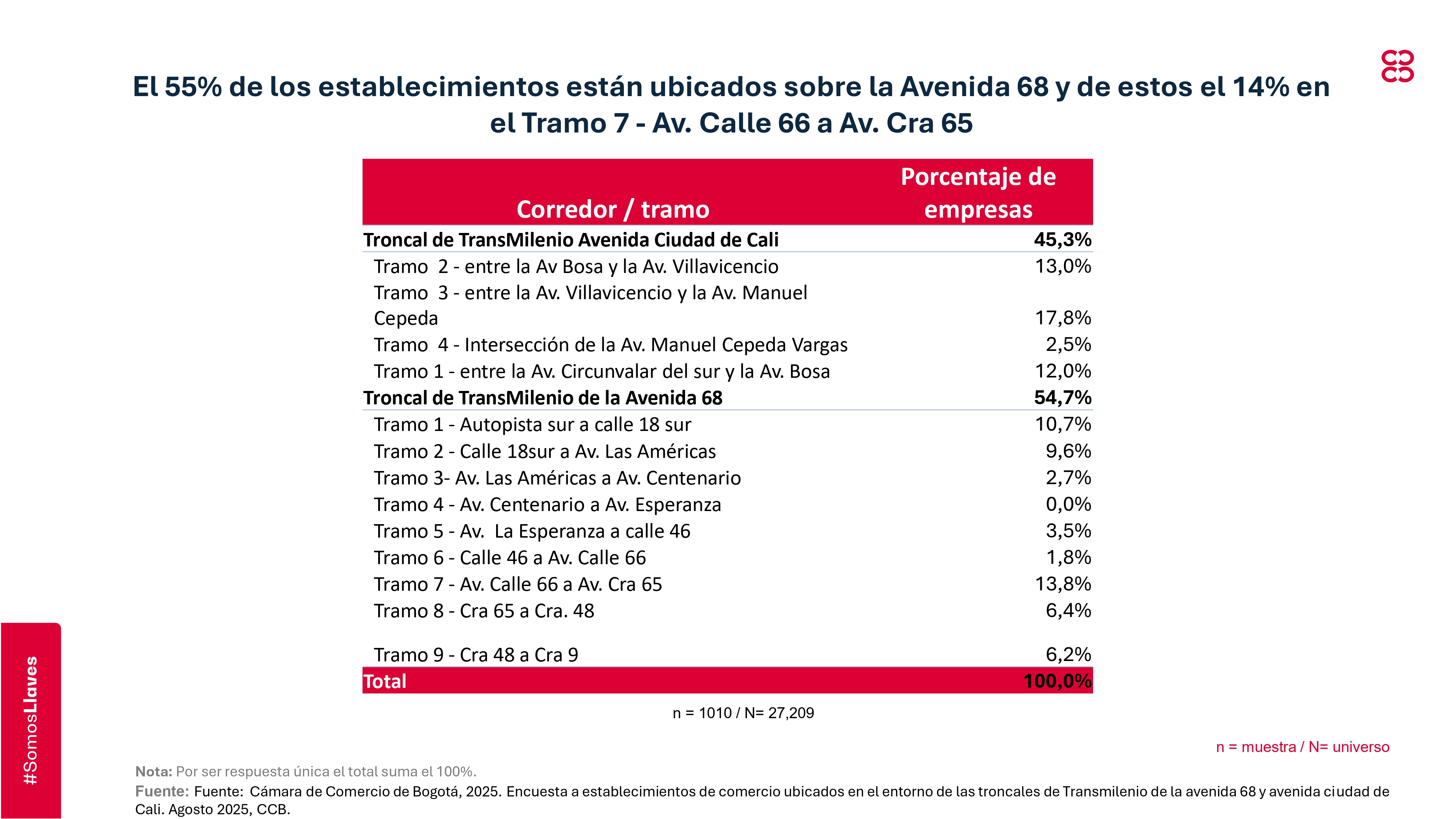 - Survey of retail establishments located near the Transmilenio trunk lines on Avenida 68 and Avenida Ciudad de Cali